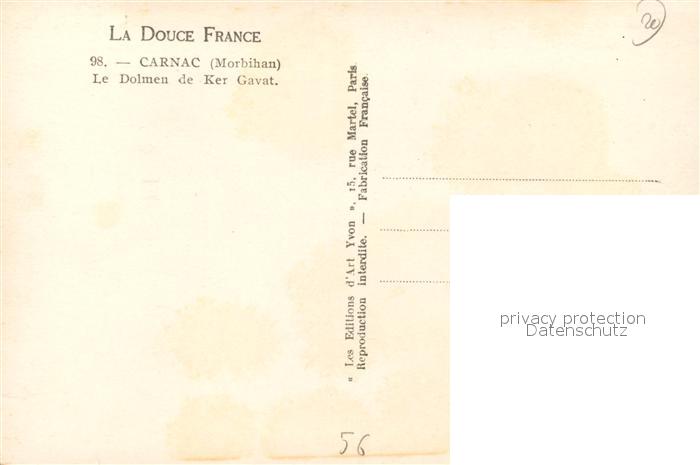 13505784 Carnac Morbihan Le Dolmen de Ker Gavat Megalith postalisch nicht gelaufen Erhaltung siehe scans [FriedD77] KatCode: 11170056156034