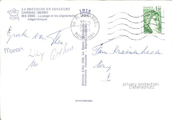 12452588 carte postale Carnac Morbihan Plage alignements megalithiques postalisch gelaufen Erhaltung siehe scans KatCode: 11170056156034