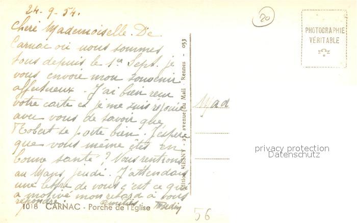13505786 Carnac Morbihan Porche de l’Eglise postalisch nicht gelaufen Erhaltung siehe scans [FriedD77] KatCode: 11170056156034