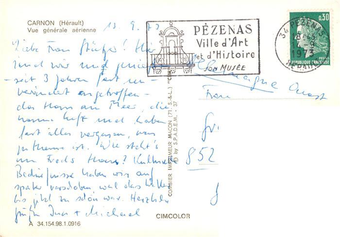 13863877 Carnon 34 Herault Vue Generale aérienne postalisch gelaufen Erhaltung siehe scans [FriedD77] carte postale Frie Katcode 11170034334154