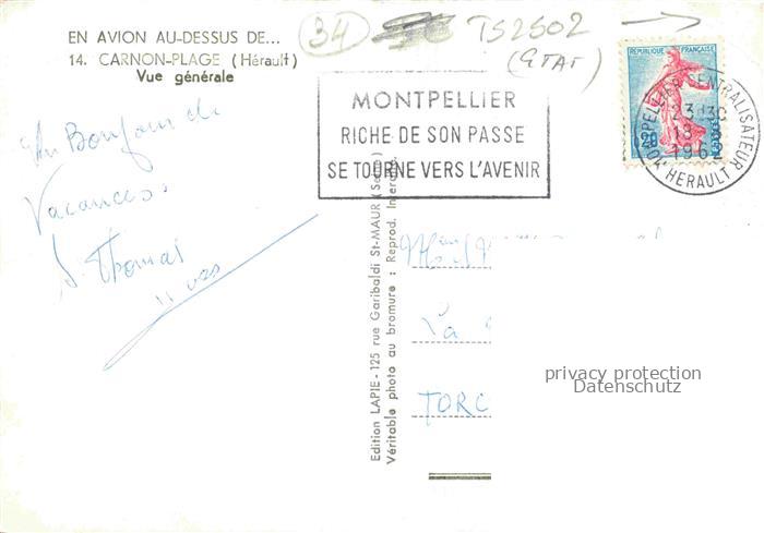 14105109 carte postale Carnon-Plage Mauguio Montpellier 34 Herault Vue générale et la plage postalisch gelaufen Erhaltung siehe scans [FriedD77] KatCode: 11170034334154