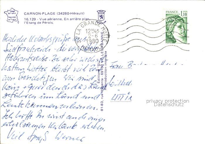 12496749 carte postale Carnon Plage Vue aerienne en arriere plan l’Etang de Perois postalisch gelaufen Erhaltung siehe scans KatCode: 11170034334154