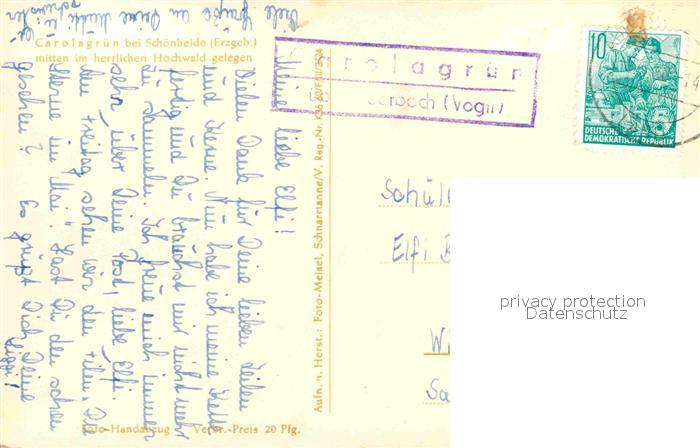 72699806 alte Postkarte Carolagruen bei Schoenheide postalisch gelaufen Erhaltung siehe scans [LiesaD40] KatCode: 11110014191290