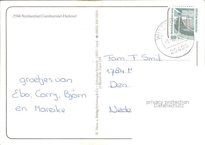 72310416 alte Postkarte Carolinensiel-Harlesiel Ostfriesland Teilansichten Muehle Hafenpartie Camping Strand postalisch gelaufen Erhaltung siehe scans KatCode: 11110003462019