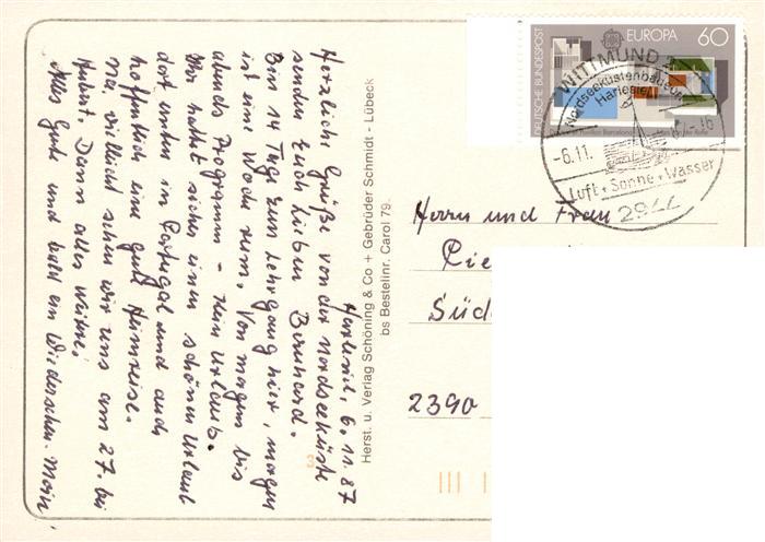 73915115 alte Postkarte Carolinensiel Ostfriesland Hafenpartie Fischhoern Friedrichsschleuse Yachthafen Muehlenstrasse Ortsmitte postalisch gelaufen Erhaltung siehe scans [WerneD78] KatCode: 11110003462019