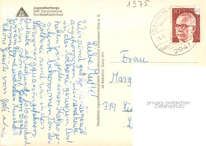73073865 alte Postkarte Carolinensiel Ostfriesland Jugendherberge postalisch gelaufen Erhaltung siehe scans [WerneD78] KatCode: 11110003462019