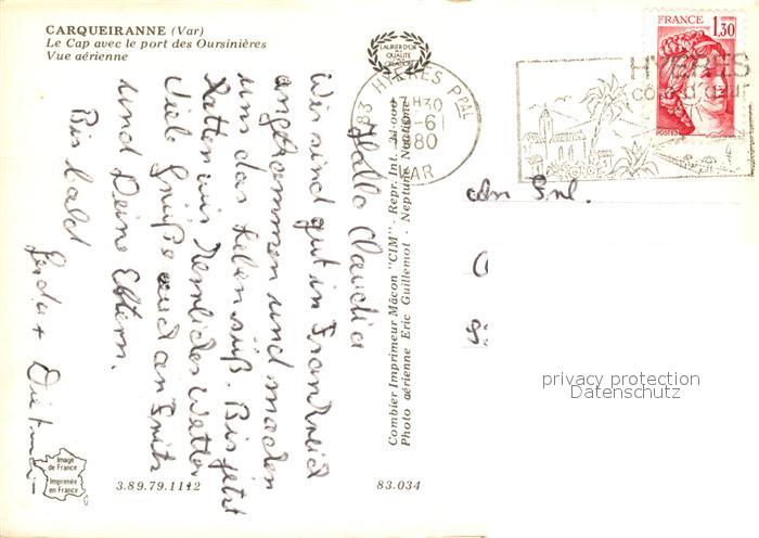 13265632 carte postale Carqueiranne Fliegeraufnahme postalisch gelaufen Erhaltung siehe scans [KathaD81] KatCode: 11170083283034