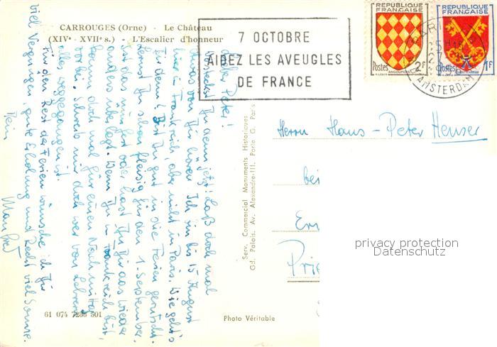 13309974 carte postale Carrouges Chateau Escalier d honneur postalisch gelaufen Erhaltung siehe scans [FriedD77] KatCode: 11170061161074