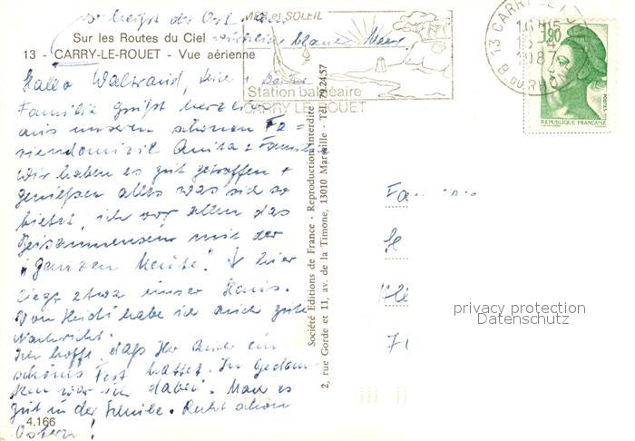 13357217 carte postale Carry-le-Rouet Vue aérienne postalisch gelaufen Erhaltung siehe scans [FriedD77] KatCode: 11170013413021