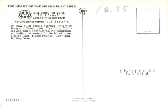 72167486 Carson City Nevada Mill House Inn Motel postalisch nicht gelaufen Erhaltung siehe scans KatCode: 14140300000000
