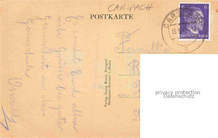14104381 carte postale Carspach Karspach Altkirch 68 Haut-Rhin Amt fuer Beamte Gauschule postalisch gelaufen Erhaltung siehe scans [FriedD77] KatCode: 11170068168062
