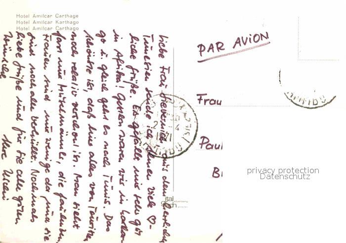 alte Postkarte Carthage Karthago Hotel Amilcar postalisch gelaufen Erhaltung siehe scans [WerneD78]