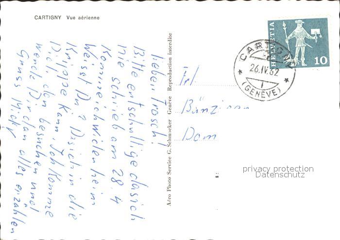 11631983 Cartigny Geneve Vue aerienne postalisch gelaufen Erhaltung siehe scans Alte Ansichtskarte Postkarte alte Postkarte hz_F Katcode 11470080290760