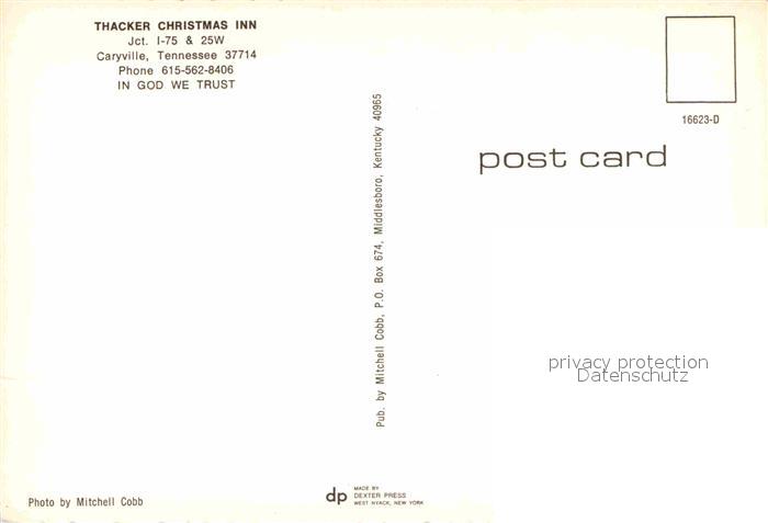 72872281 Caryville Tennessee Thacker Christmas Inn Restaurant postalisch nicht gelaufen Erhaltung siehe scans [FriedD77] KatCode: 14140450000000