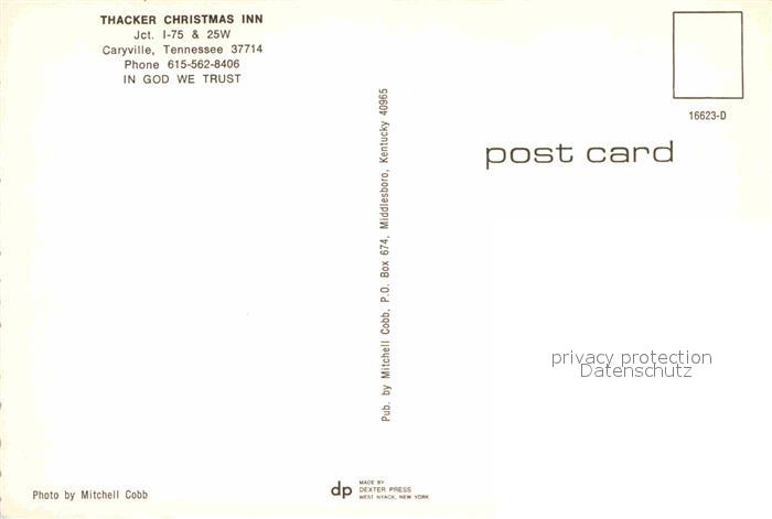 72758844 Caryville Tennessee Thacker Christmas Inn Rezeption Gastraum postalisch nicht gelaufen Erhaltung siehe scans [WerneD78] KatCode: 14140450000000