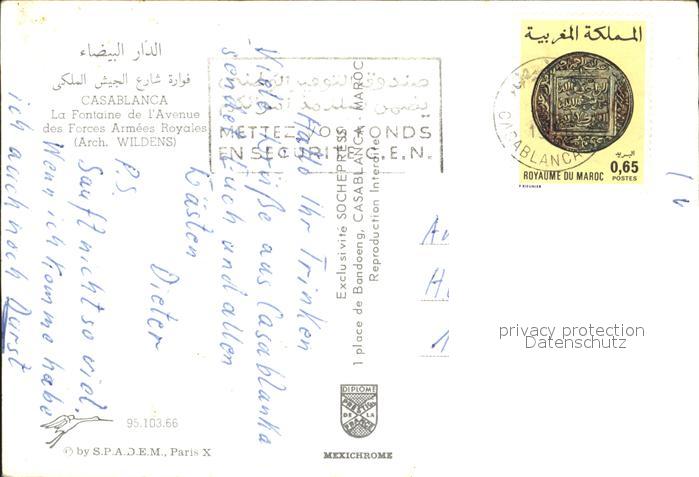 old postcard Casablanca Fontaine Avenue des Forces Armees Royales postalisch gelaufen Erhaltung siehe scans