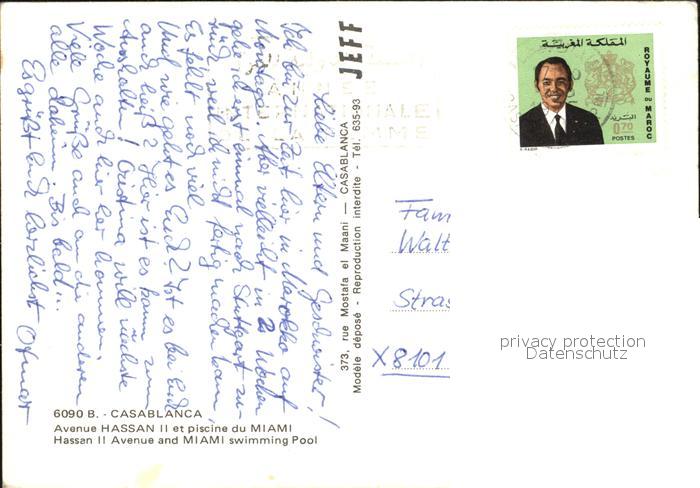 alte Postkarte Casablanca Freibad Strassenpartie postalisch gelaufen Erhaltung siehe scans