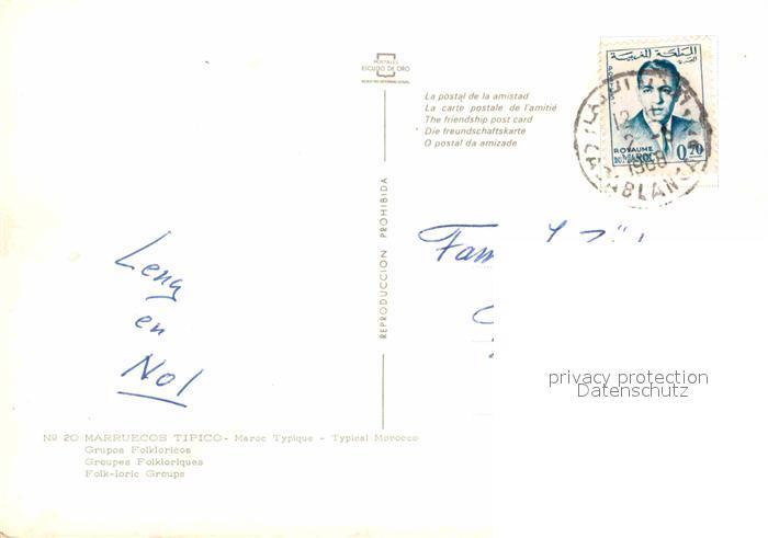 old postcard Casablanca Groupes Folkloriques Maroc Typique postalisch gelaufen Erhaltung siehe scans [FriedD77]