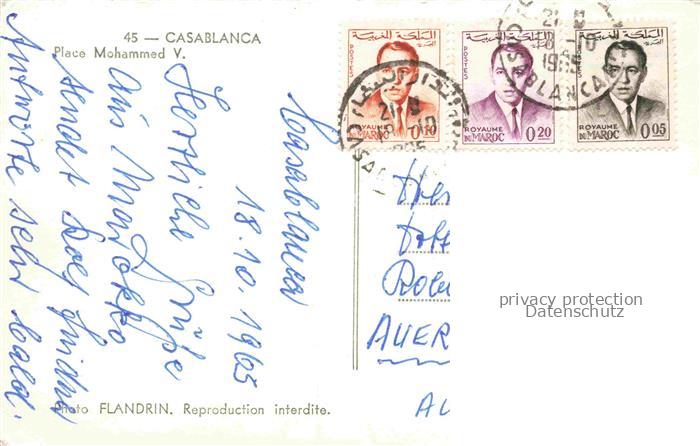 74143450 old postcard CASABLANCA Maroc Place Mohammed V. postalisch gelaufen Erhaltung siehe scans [SanaeD93] KatCode: 18300
