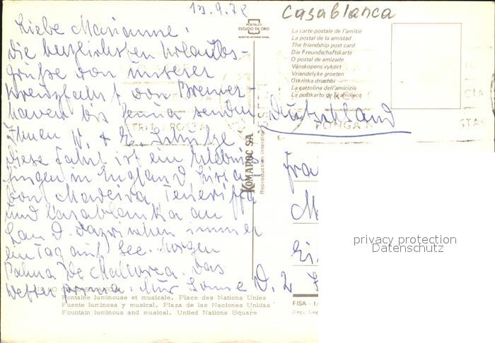 alte Postkarte Casablanca Place des Nations Unies postalisch gelaufen Erhaltung siehe scans