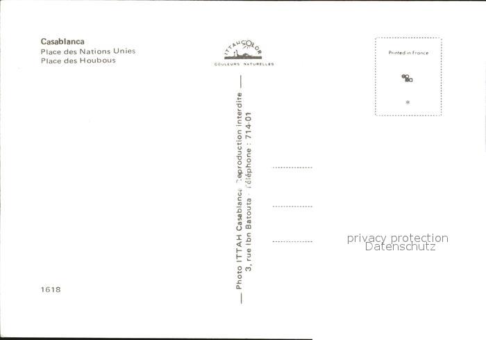 Casablanca Place des Nations Unies Houbous postalisch nicht gelaufen Erhaltung siehe scans