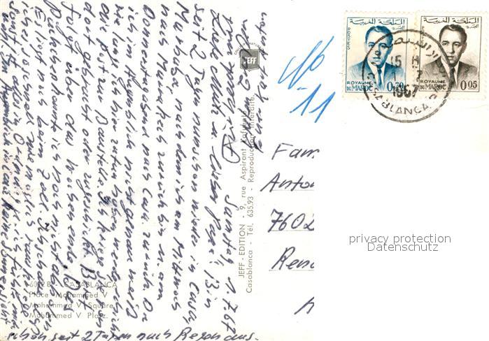 13597898 Casablanca Place Mohamed V postalisch gelaufen Erhaltung siehe scans [WerneD78] old postcard Wern Katcode 18300