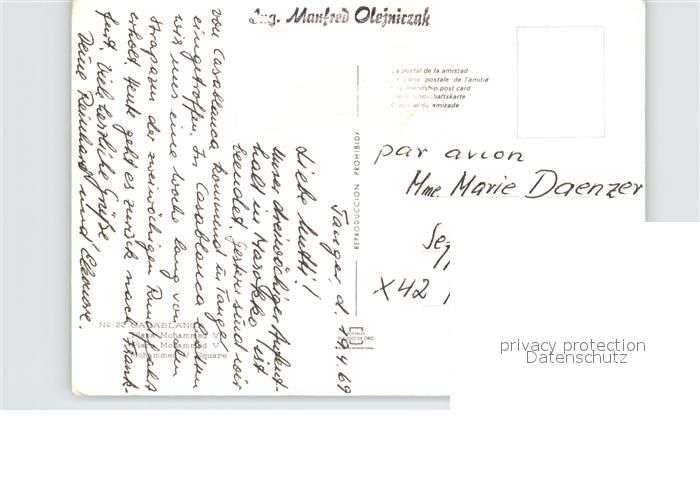 old postcard Casablanca Plaza Mohammed V la nuit postalisch gelaufen Erhaltung siehe scans [FriedD77 kt118box]