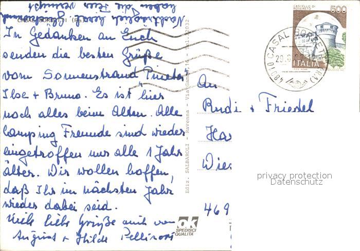 old postcard Casal Borsetti Hafen Strand Sonnenuntergang Motorboot postalisch gelaufen Erhaltung siehe scans