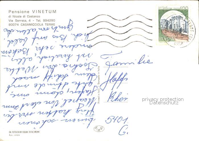 old postcard Casamicciola Terme Pensione Vinetum postalisch gelaufen Erhaltung siehe scans
