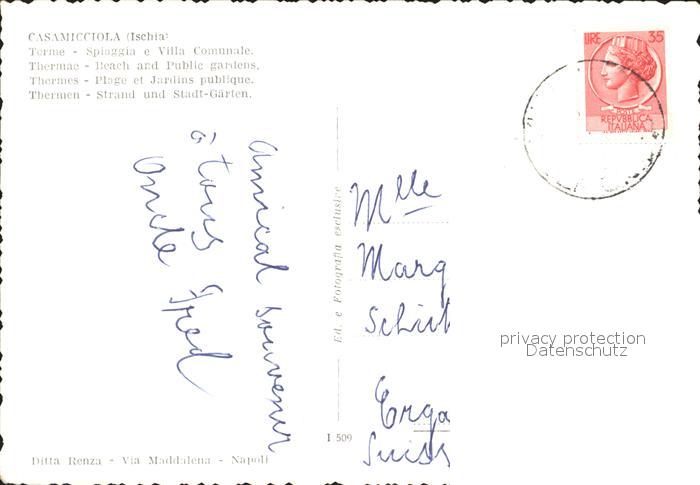 old postcard Casamicciola Terme Spiaggia Villa Comunale Strand Stadtgaerten postalisch gelaufen Erhaltung siehe scans