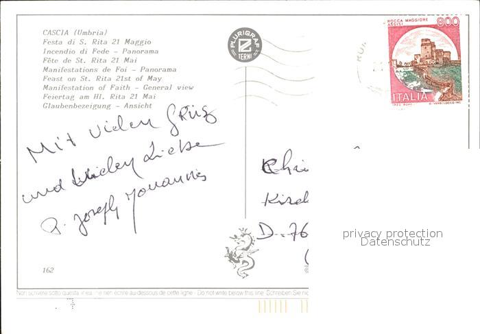 old postcard Cascia Festa di S Rita 21 Maggio notturno postalisch gelaufen Erhaltung siehe scans