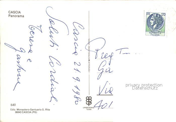 old postcard Cascia postalisch gelaufen Erhaltung siehe scans