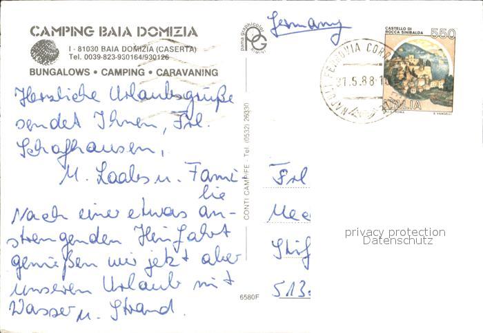 old postcard Caserta Camping Baia Domizia postalisch gelaufen Erhaltung siehe scans