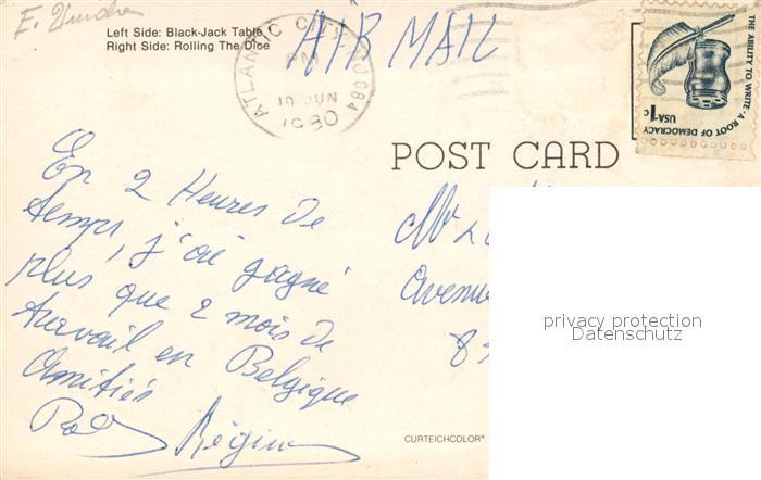 alte Postkarte Casino Spielbank Atlantic City Black-Jack Rolling the Dice postalisch gelaufen Erhaltung siehe scans [PaolaD17]