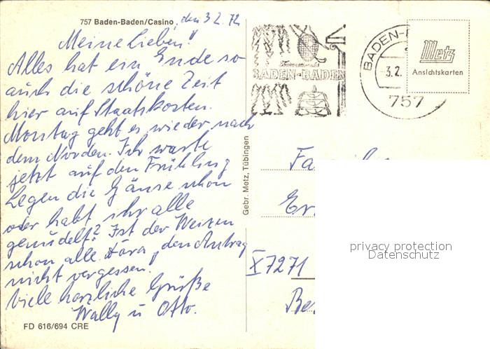 alte Postkarte Casino Spielbank Baden-Baden Goldtisch Pompadour-Saal Gruener Salon postalisch gelaufen Erhaltung siehe scans [PaolaD17 kt110box]