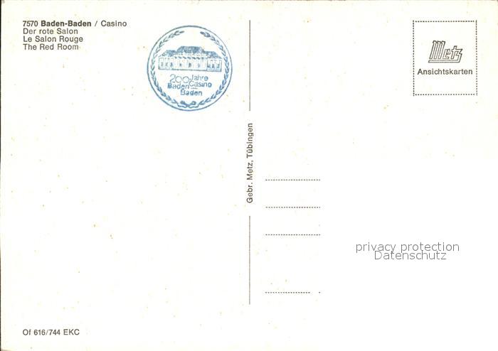 Casino Spielbank Baden-Baden Roter Salon Roulette postalisch nicht gelaufen Erhaltung siehe scans