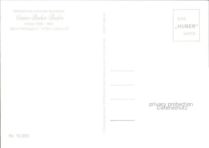Casino Spielbank Baden-Baden Salon Pompadour postalisch nicht gelaufen Erhaltung siehe scans