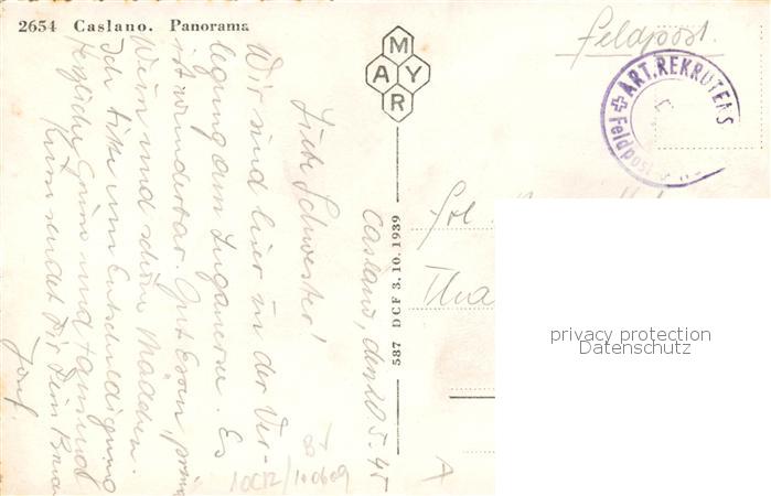 13797475 alte Postkarte Caslano TI Panorama Luganersee postalisch gelaufen Feldpost – Stempel Erhaltung siehe scans [FriedD77] KatCode: 11470210660114