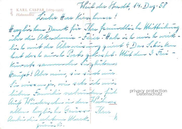 CASPAR Karl (1879-1956) Kuenstlerkarte Hahnenschrei
