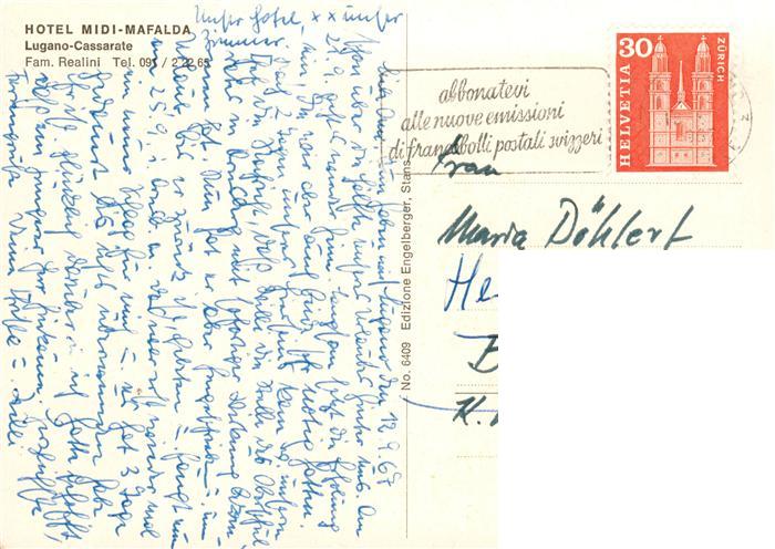 13881273 alte Postkarte Cassarate Lugano TI Hotel Midi Mafalda postalisch gelaufen Erhaltung siehe scans [WerneD78] KatCode: 11470210665262