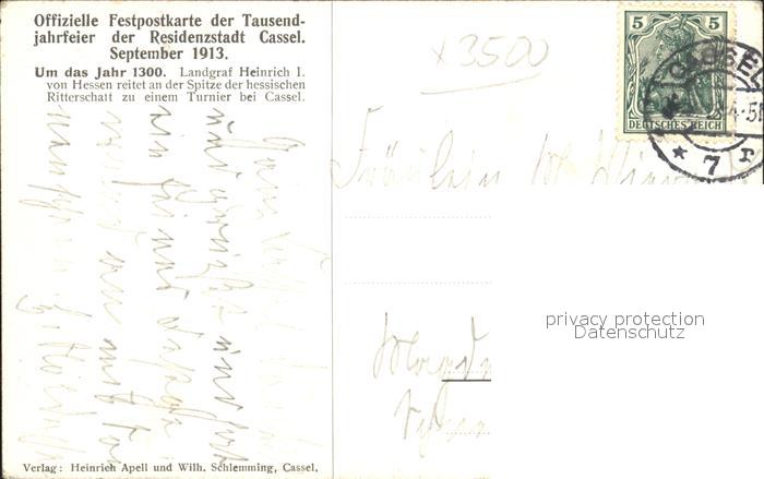 42180278 alte Postkarte Cassel Kassel Offizielle Festpostkarte der Tausenjahrfeier der Residenzstadt Landgraf Heinrich I postalisch gelaufen Erhaltung siehe scans KatCode: 11110006611000