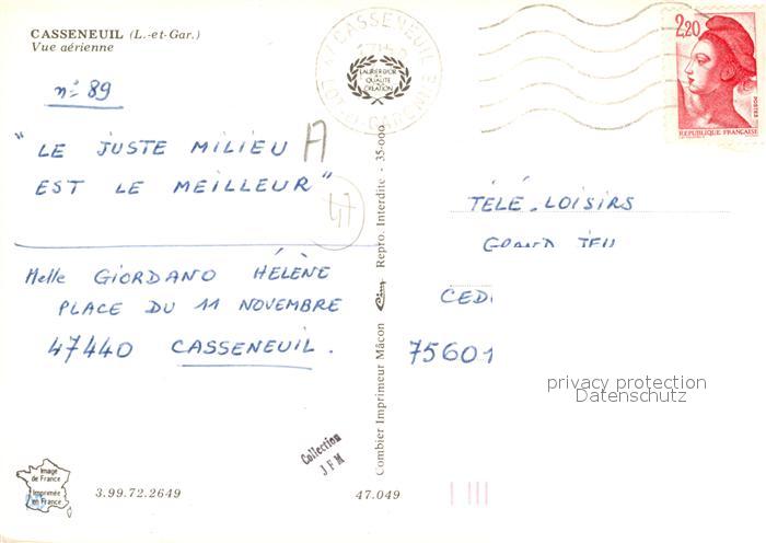 13162406 carte postale Casseneuil Vue aérienne postalisch gelaufen Erhaltung siehe scans [FriedD77] KatCode: 11170047347049