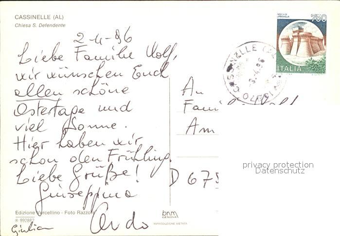old postcard Cassinelle Chiesa S Defendente Kirche postalisch gelaufen Erhaltung siehe scans