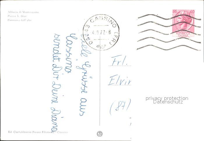 old postcard Cassino Abbazia Montecassino Piazza A. Diaz postalisch gelaufen Erhaltung siehe scans