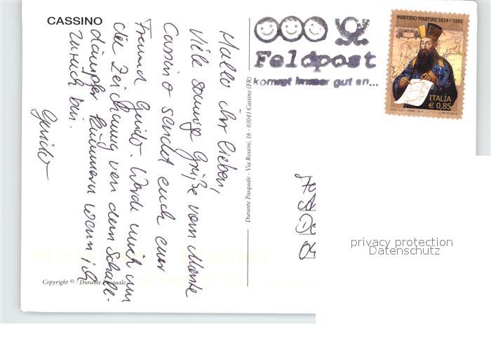 old postcard Cassino Citta 70 Anniversario della distruzione postalisch gelaufen Feldpost Erhaltung siehe scans