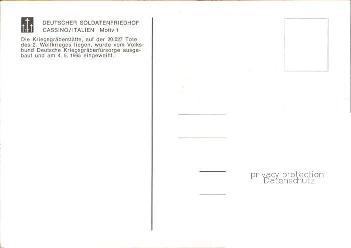 Cassino Deutscher Soldatenfriedhof postalisch nicht gelaufen Erhaltung siehe scans [KathaD79]