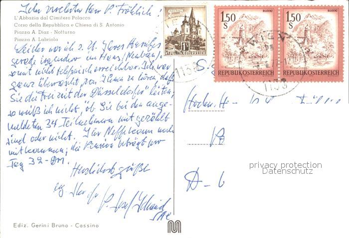 old postcard Cassino L’Abbazia dal Cimitero Polacco Piazza A Diaz Notturno postalisch gelaufen Erhaltung siehe scans