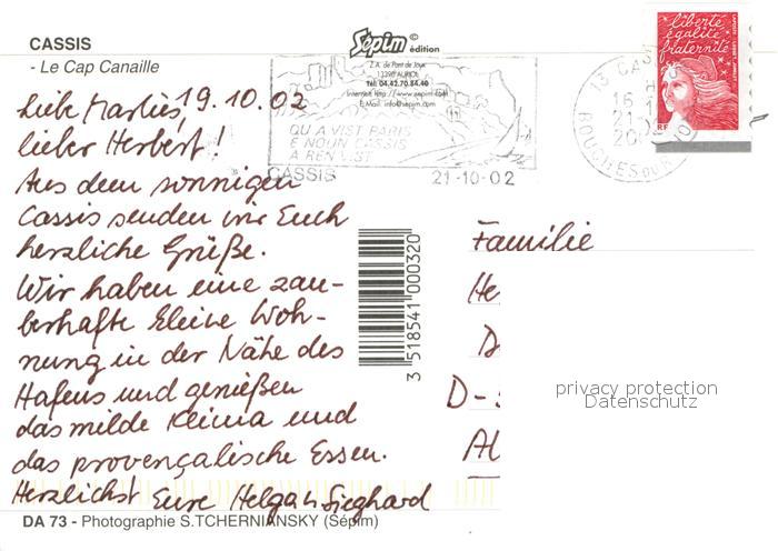 13004304 carte postale Cassis Cap Canaille postalisch gelaufen Erhaltung siehe scans [KathaD81] KatCode: 11170013313022