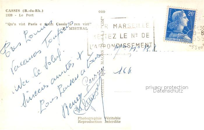 13516015 carte postale Cassis Port postalisch gelaufen Erhaltung siehe scans [KathaD81] KatCode: 11170013313022