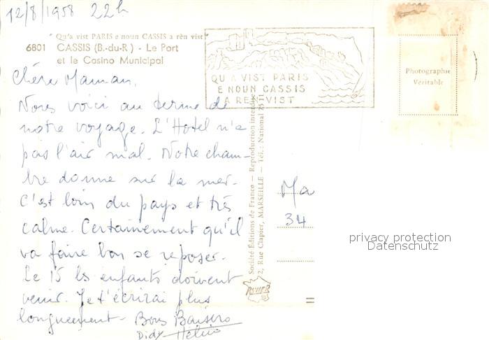 13520965 carte postale Cassis Port et Casino Municipal postalisch gelaufen Erhaltung siehe scans [LiesaD40] KatCode: 11170013313022